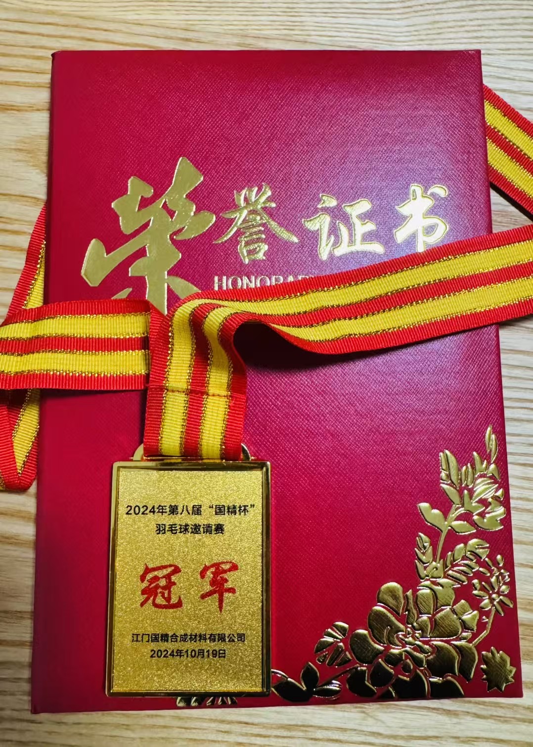 2024年10月19日,江門國精合成材料有限公司舉行“2024年第八(bā)屆‘國精杯’羽毛球邀請賽”,我司(sī)參與的(de)”一隊“在全體人員的共同努力下,齊心協力,英勇(yǒng)奮戰,在本次比賽中榮獲冠軍。